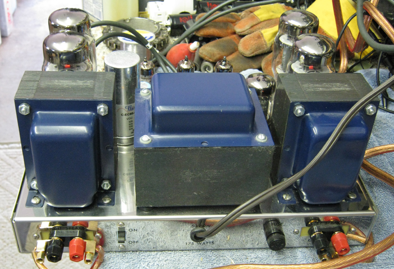Bob Latino Dynaco ST-120 *SOLD* Stereo power amplifier 2-60 watt channels I just received this amp in on trade. It was originally built by an inexperienced DIY builder and is virtually new. It needed just about a complete redo of all soldering since it would not work reliably from the lack of enough solder on almost all connections. I also replaced (upgraded) all signal capacitors. It now has been playing for a couple days perfectly and sounds darn good for the cost. I'd take this amp over just about anything coming out of China! Great bargain! You can purchase this amp two ways. Without tubes or I will source at my cost and burn in what ever set of tubes you decide you want out of current productions. It utilizes 4- KT88/6550 3-12AT7's and 1- 5AR4 (or 5AR4 plug in SS rectifier replacement). I will warranty the amplifier for 1 year repair you cover all shipping costs. This amp also has the Triode/Ultra Linear switch option. Link to Bob Latino's amplifier page http://bob01605.50webs.com/ *SOLD* ST-120 Amplifier only $925 plus shipping After X-mas sale $875 plus shipping Tube set of your choice at my costs*SOLD*